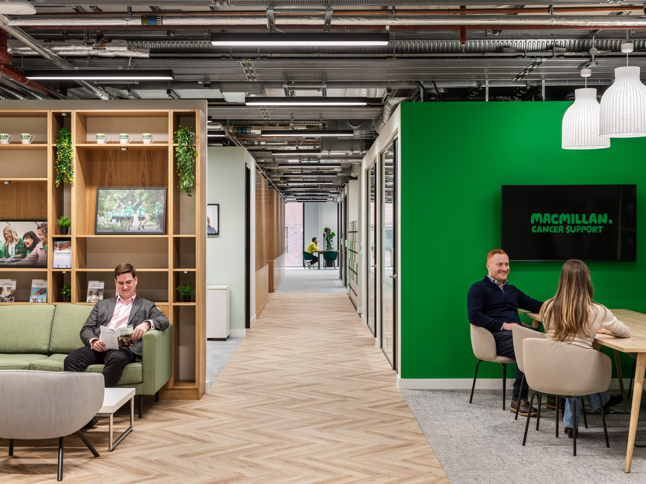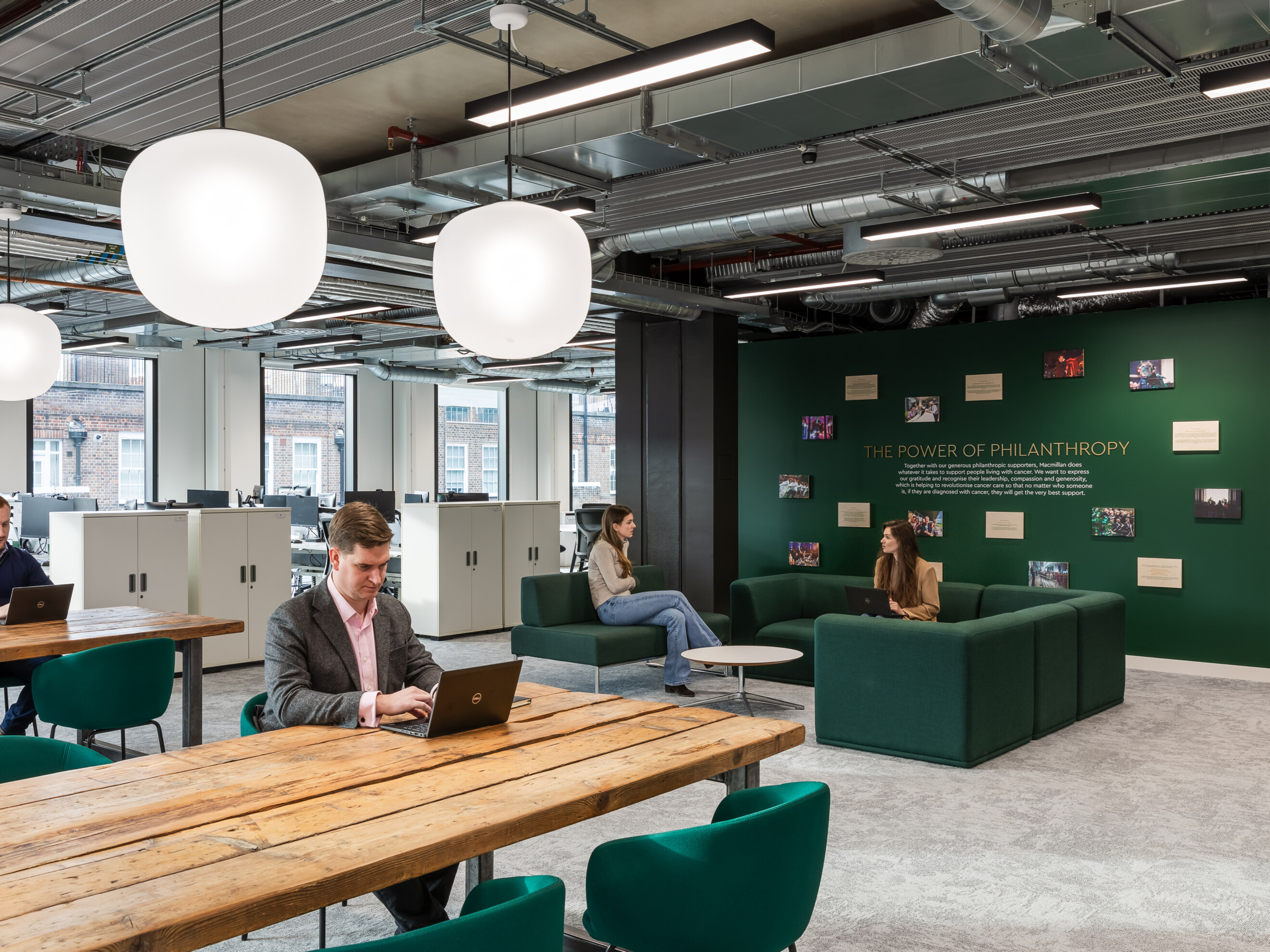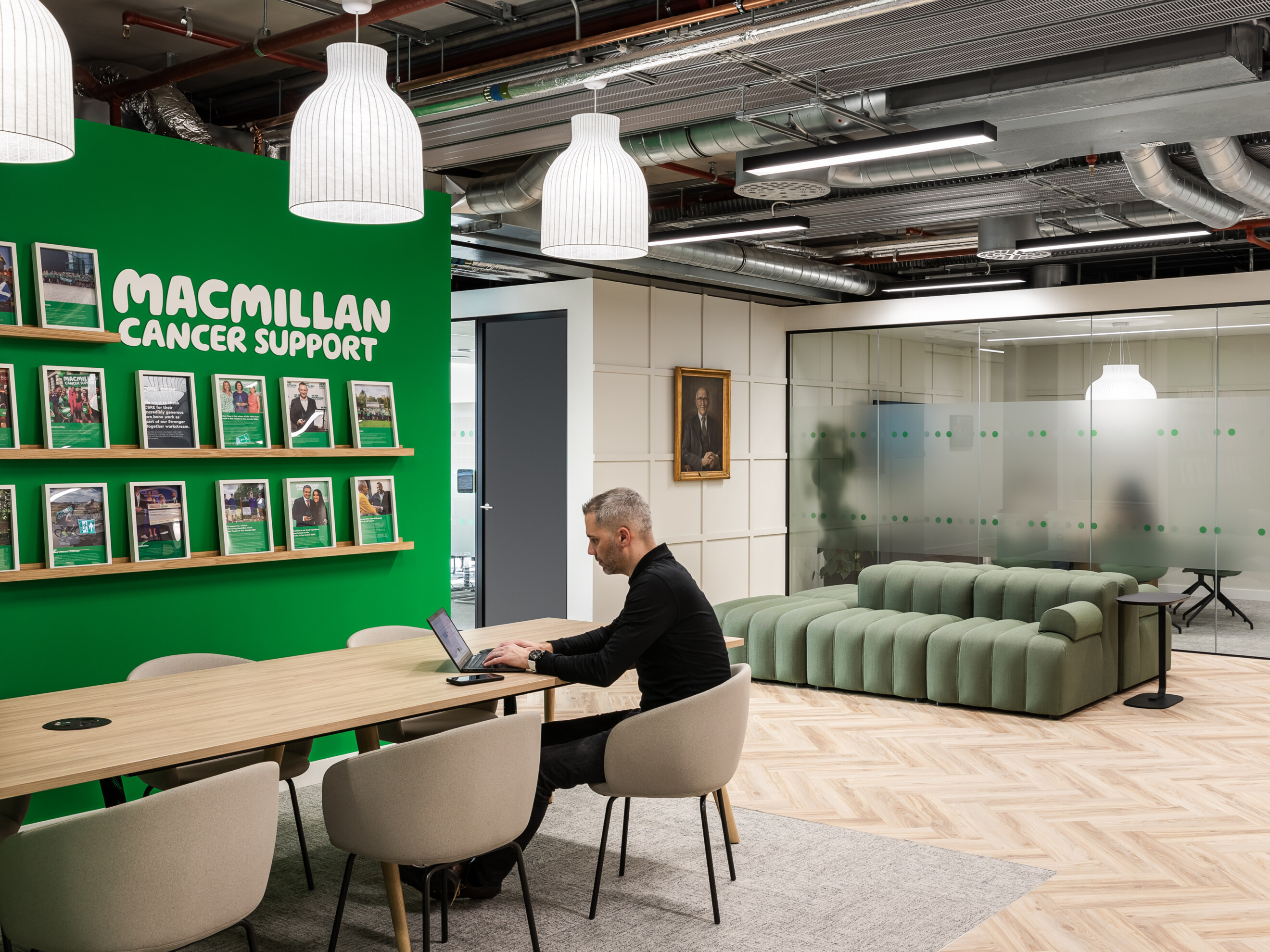 After years in an office spread over five floors, Macmillan Cancer Support decided to move its London home to a smaller space in the heart of Bankside. This transition wasn’t merely about supporting the organisation’s efforts to become more environmentally and financially sustainable; it was a chance to rethink how the workspace could truly support their people based in and around London. We worked alongside Macmillan to create an inclusive, sustainable workplace design that feels like a home away from home for their teams.