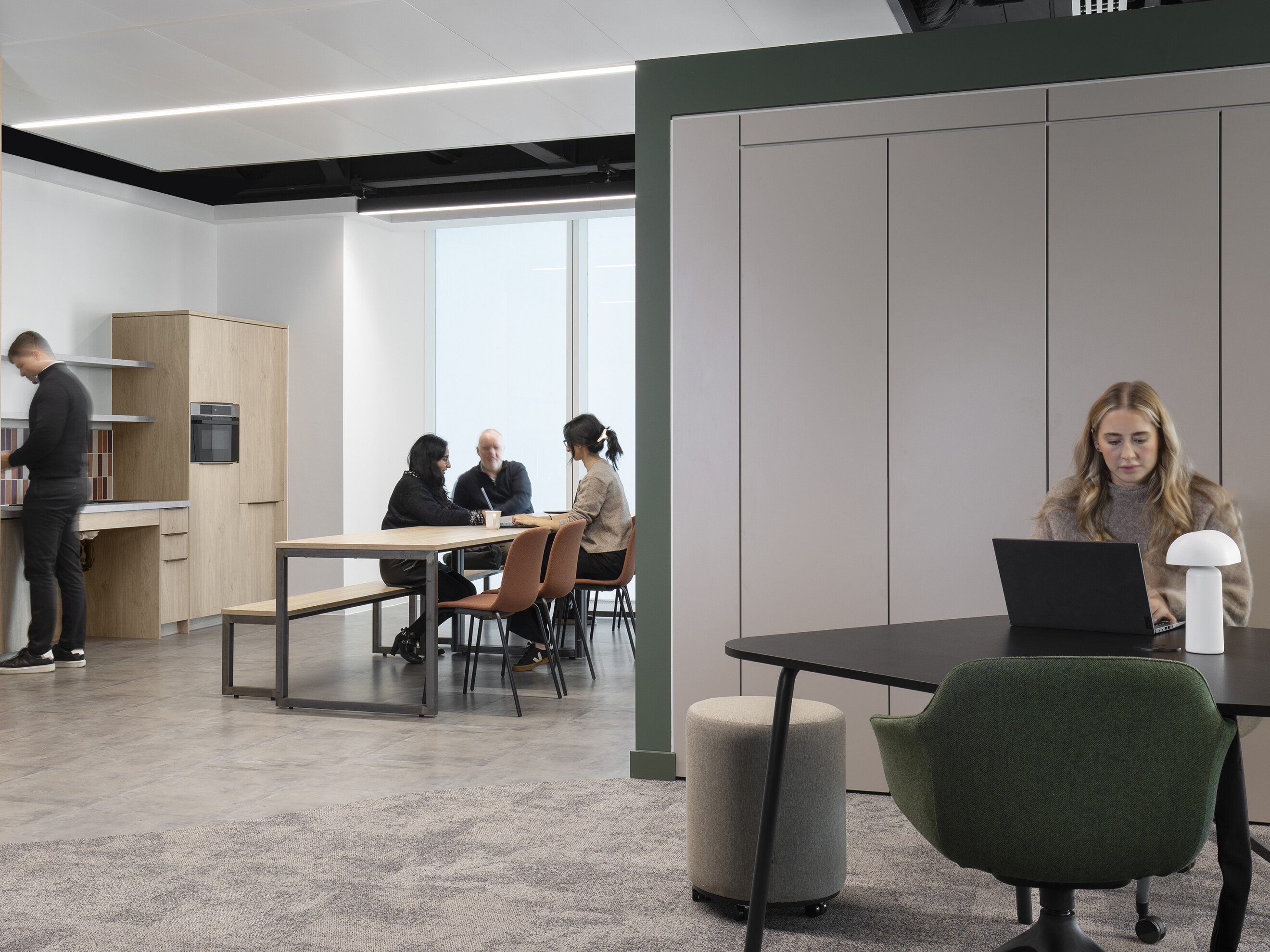 The design brief was to create two turnkey workspaces that’s ready to let and ready to work. The result: two suites, each complete with open-plan desking, collaborative areas, a fully accessible teapoint, and quiet zones that support a range of working styles. From day one, the spaces were positioned as a premium ‘plug and play’ solution, offering incoming tenants speed to market and reduced upfront investment.