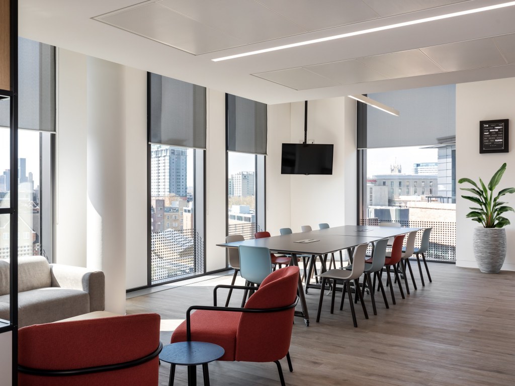 Cyber security consultants Reliance Cyber were looking to relocate office due to a lease event. Following the pandemic, they needed an office space that would make way for more flexible working practices with additional amenities that support hybrid working. As a longstanding client of ours, Reliance asked us to manage the relocation and fit out process of their new workplace, helping them to create a sleek, minimalist office space that would suit the needs of their business and their people. They opted to take a similar sized space to their existing office but looked to reconsider their office approach.