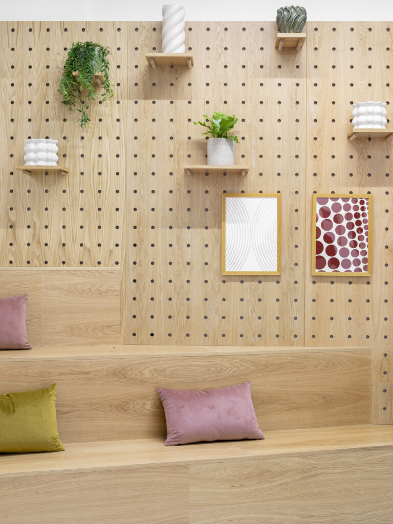 Stepping into Storybox, tenants and visitors are met with a soft, welcoming entrance area featuring natural wood finishes, biophilic design elements, and oak furniture. Adjacent to this space, a versatile meeting suite doubles as a client-facing hub and an everyday workspace for tenants. Beyond the entrance, desks are arranged in smaller clusters to create pockets of privacy and focus, avoiding the overwhelm of traditional office layouts.